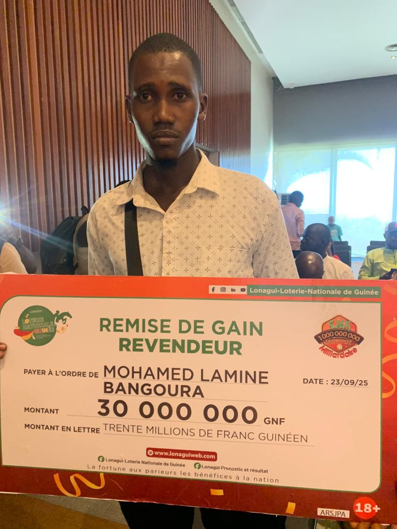Jeune de la trentaine, Aboubacar Kouyaté est l’heureux gagnant du Jackpot d’un milliard six cent quarante millions de francs guineens avec la Loterie Nationale de Guinée. La cérémonie de remise de gain a eu lieu ce vendredi à Conakry.